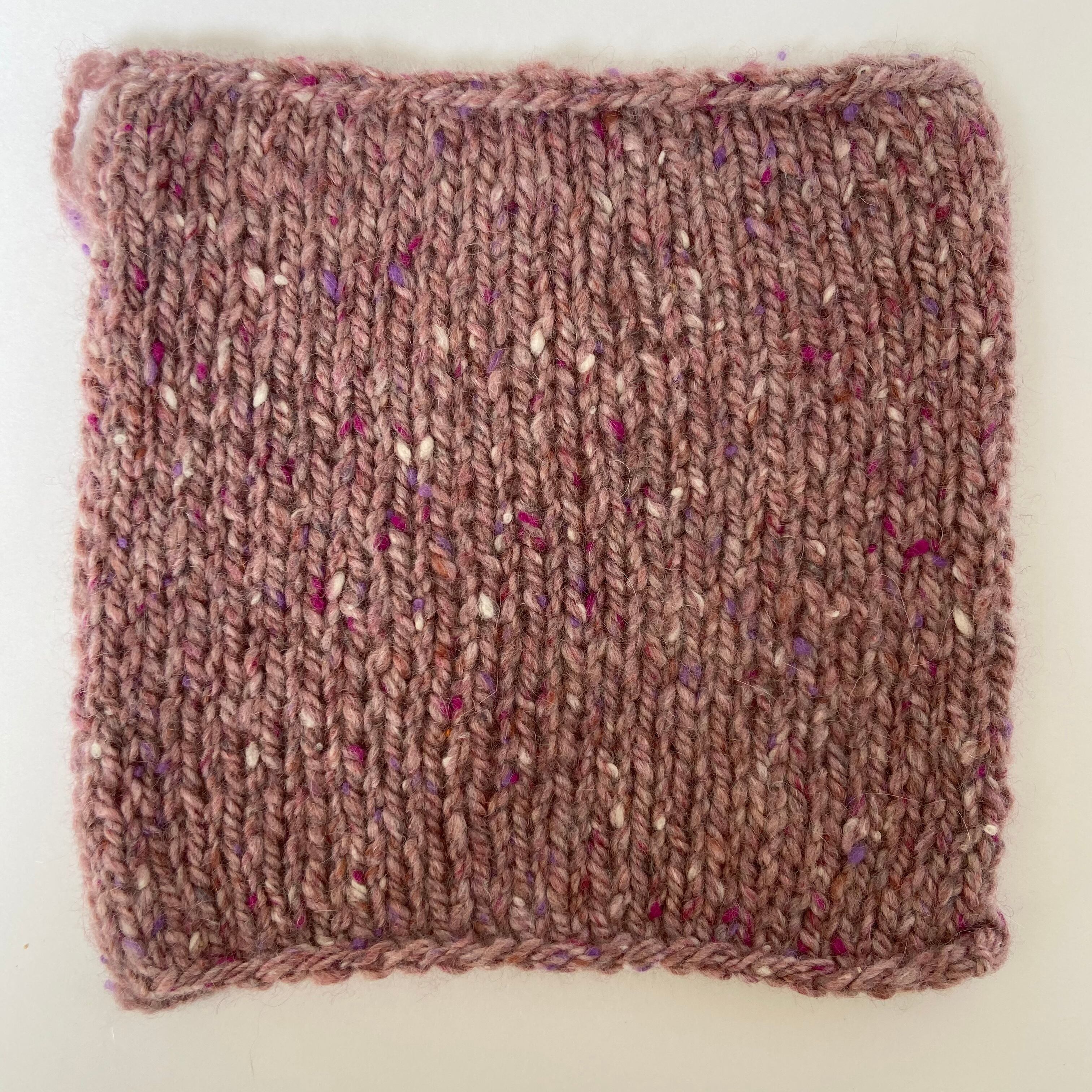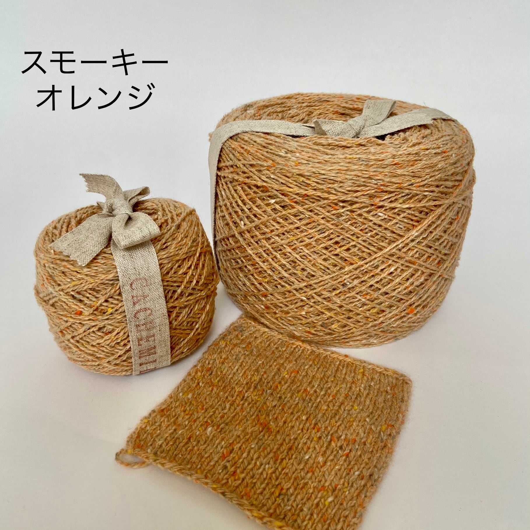 ツイード調のカシミヤ100%ヤーン。カラーネップが、可愛らしいアクセントになっています。編んだあとに縮絨することで、なめらかなカシミヤらしい肌触りになります。